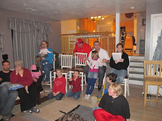 The Paulsen Christmas party is always a little chaotic, as we have so many people, and my house just isn't big enough. We exchanged gifts, and had tons of fun. Bryce and Shannon had us, and they spoiled us with personalized ice cream cups. Mine had Minnie Mouse, Jeff's had tennis shoes, Meghan;s had socks, Bradlee's had a guitar, and Kaylee's had a monkey. We also got an ice cream container that said Clark Characters on it. Such a wonderful gift. We had Bryce and Shannon's name. I made sock monkey's out of Bryce's socks, and Jeff made Bryce a colostomy bag cover.